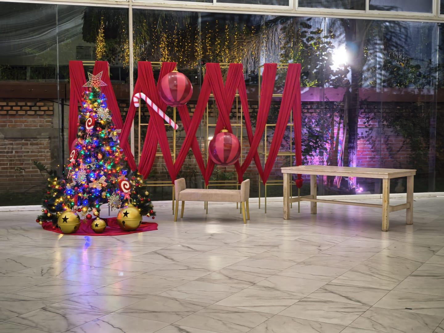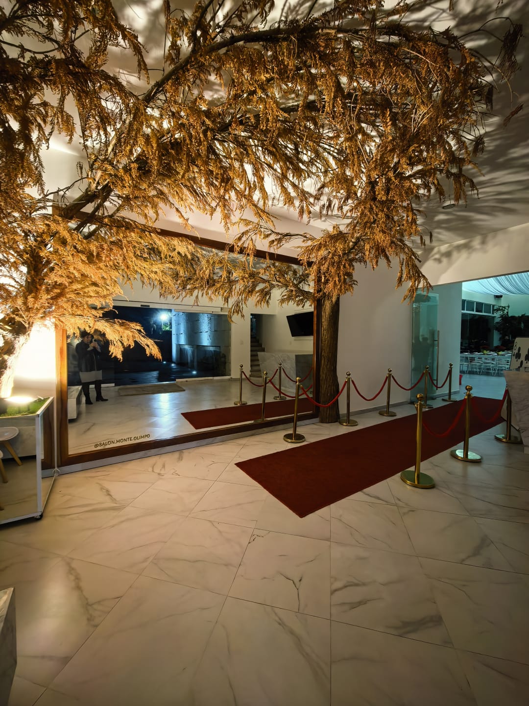 - lobby con: expejo extra grande, arboles reales incrustado sobre la pared y pantalla.